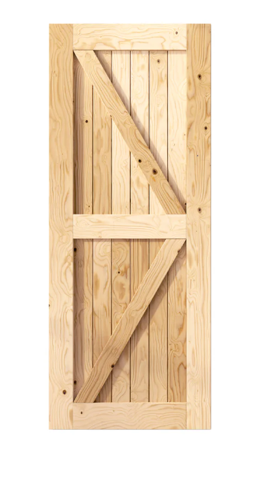 This standard barn door comes measuring at 84" tall. With the RIGHT ARROW pattern design. All doors come fully assembled and unstained and unsealed as natural knotty pine wood.